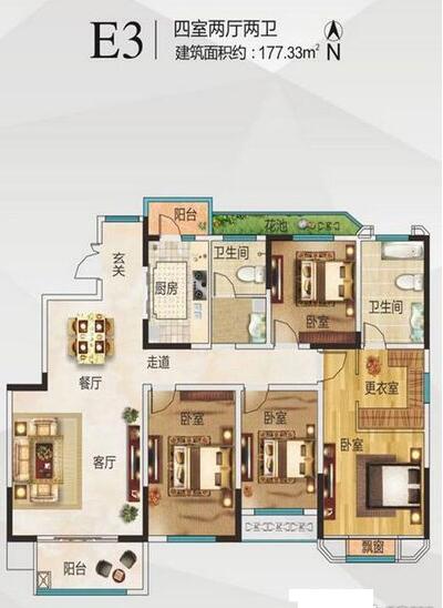 • 户型:4室2厅1厨2卫